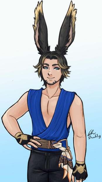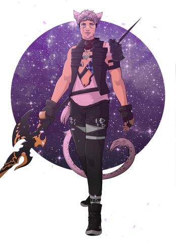 Regalo was born in the South Shroud to a native Keeper of the Moon female and a male Helion Hrothgar who escaped his service in the Imperial Army by crossing Baelsars Wall. Regalo was and still is a momma's boy through and through often spending his time accompanying his mother on her business and around Gridania. This led to him becoming quite sheltered and isolated from other children his age causing him to not have that many friends or know how to interact socially. His relationship with his father however was quite rocky over the years until his eventual death during the calamity. The Calamity left Regalo with his share of emotional and physical scars. Eventually after the years helping to recover from the Calamity he set off against his mothers wishes to become an adventurer by heading to Ul'dah and joining the Pugilists Guild.